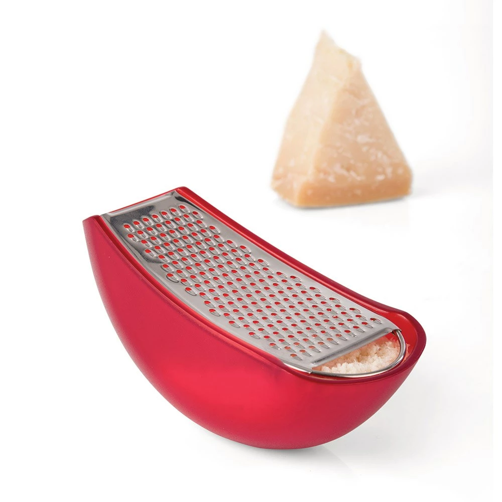 Grate your cheese directly into your serving bowl with the Alessi Parmenide Steel Grater 15.3 x 7.5 x 6.7cm Red