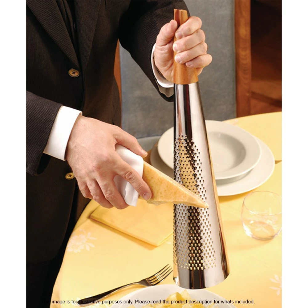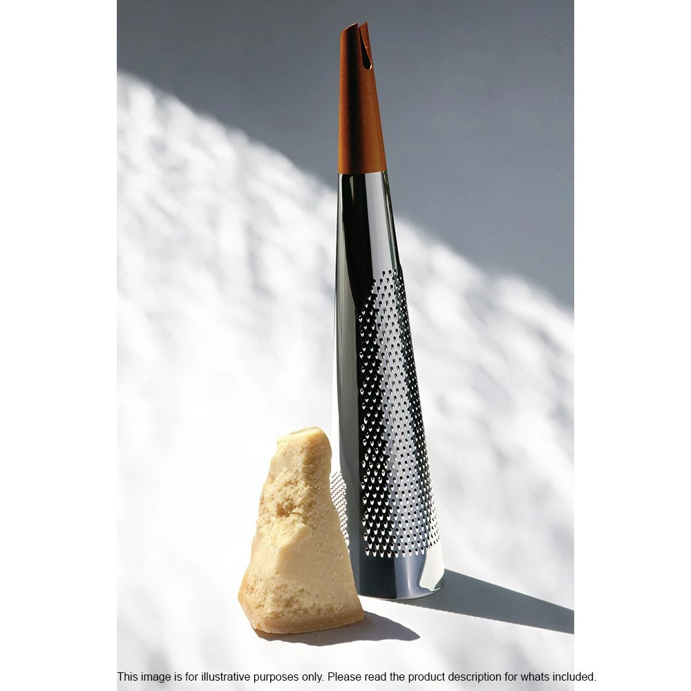 The Alessi Todo Steel & Wood Grater is an elegant grater that will grate cheese quickly and easily while making a beautiful statement on display in your kitchen or on your table top. This cone-shaped grater is extremely classy and thanks to its tall profile, you can grate one portion of cheese with just one complete stroke. The Alessi Todo Steel & Wood Grater is made from top quality stainless steel with super sharp blades and is topped off by an elegant wooden top. It makes a great gift idea for any home chef or cooking enthusiast.