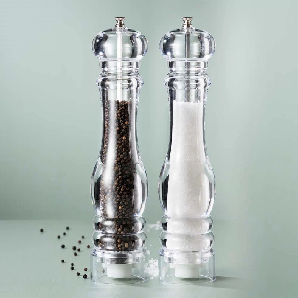 - Both feature a universal grinding mechanism suitable for pepper corns or rock salt