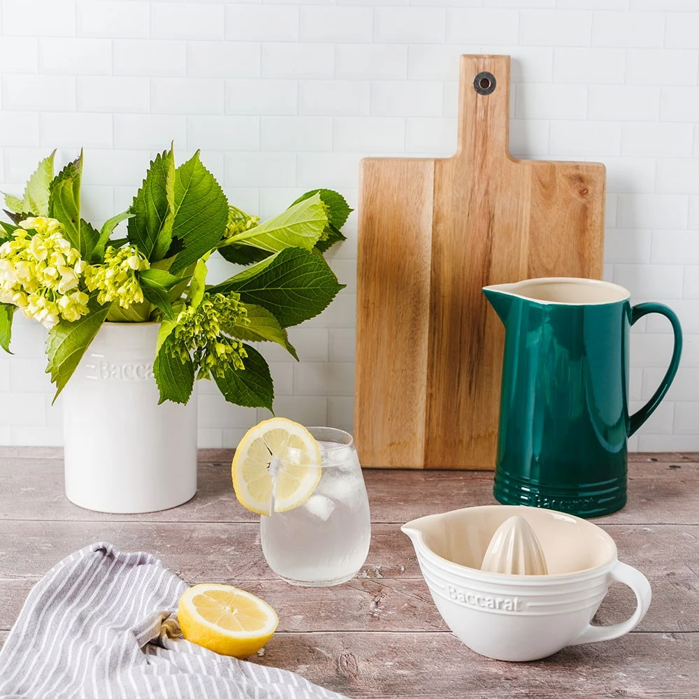 Experience the most out of your fruit with the Baccarat Le Connoisseur Citrus Juicer White. Simply place your desired citrus over the reamer, and let the Le Connoisseur Citrus Juicer do the work for you. The ergonomic curved handle and riveted body aids in a strong, sure grip while juicing, helping you give your juices and cocktails a punch. Add a European twist to your kitchenware collection with Baccarat’s Le Connoisseur range. With French inspired designs, bring a classic, familiar feel to any space. Sporting a tricolor inspired white design, this Citrus Juicer is microwave, oven and dishwasher safe for your convenience.