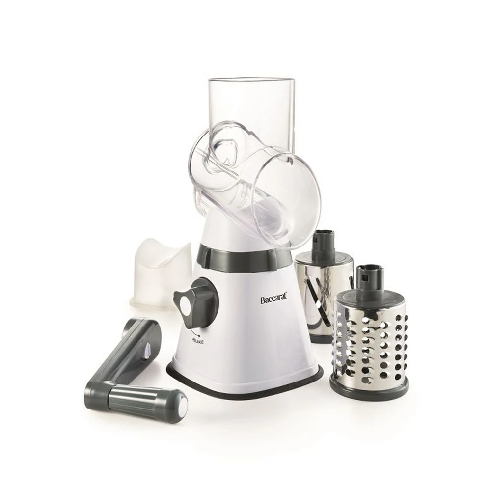 Instantly grate and slice vegetables, hard fruits, and even cheeses with ease and safety using the Baccarat Prepare Rotary Drum Grater!