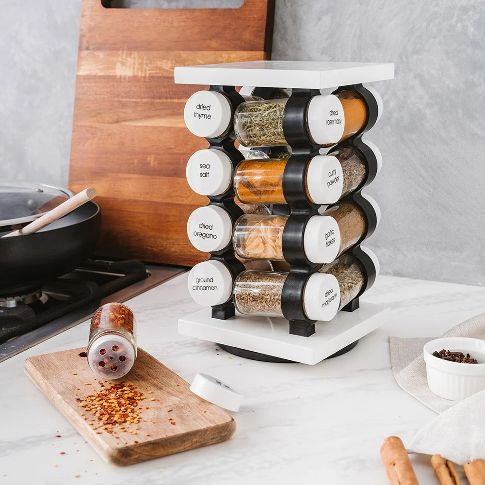 - Rotating spice rack with a smooth 360-degree spin that makes accessing your essential herbs easy