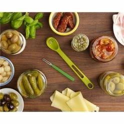 Serve up olives and antipastos effortlessly with the Joseph Joseph Green Scoop & Pick 2-Piece Olive Spoon and Fork Set