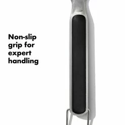 Upgrade your BBQ skills and impress guests this grilling season with the OXO Good Grips Grilling Precision Turner. Made from strong and durable stainless steel, the turner can withstand the highest of heats and is resistant to rust for long lasting use. The OXO Good Grips Grilling Precision Turner features a thin beveled edge that lets your effortlessly slide underneath and flip even the most delicate fish fillets. In addition, thanks to the strength of the flexible head, the turner is also strong enough to maneuver thick and heavy pork chops among other pieces of meat. Safety features such as the extra-long design keeps hands away from heat and the soft, ergonomic handle prevents hands from slipping making this turner a great grill side companion. Pop the OXO Good Grips Grilling Precision Turner in the dishwasher for effortless cleaning then hang it up for compact storage thanks to the built-in hanging hook.