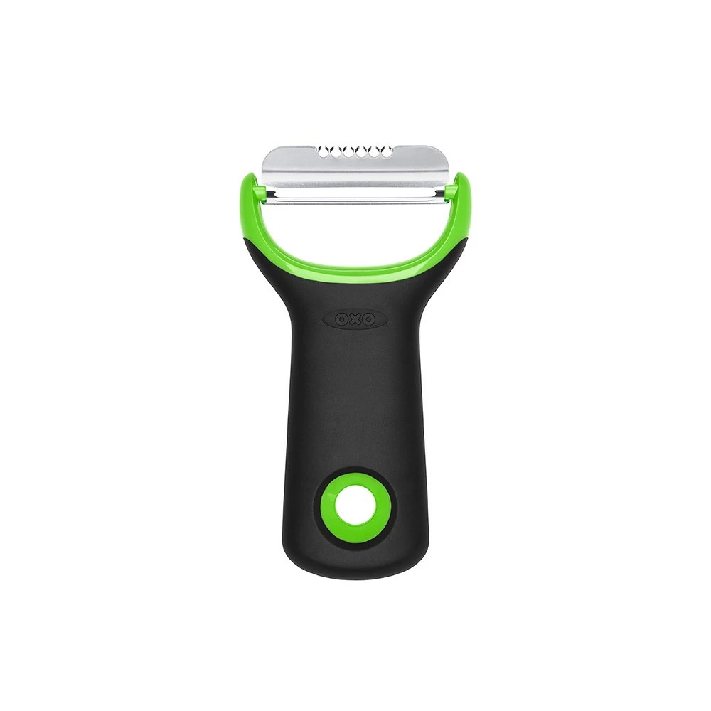 - Y-shaped peeler with a double-sided blade that makes zesting and peeling citrus fruits easy