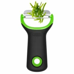 The ultimate prep tool for skinning and zesting fresh citrus fruits for your favourite cocktails and dessert recipes, the OXO Good Grips Prep Citrus Peeler is crafted from lightweight and durable plastics with a premium food grade Japanese steel dual-function blade that can slice through orange, lemon, and lime rind with ease. Remove large strips of the rind with the flat blade flavour your beverages or carve out thin sticks of rind with the channel blade for a lovely cake and dessert garnish in an instant! Ergonomically designed to fit comfortably in the palm of your hand, the OXO Good Grips Prep Citrus Peeler won’t slip from your grip and can be washed with ease in the dishwasher.