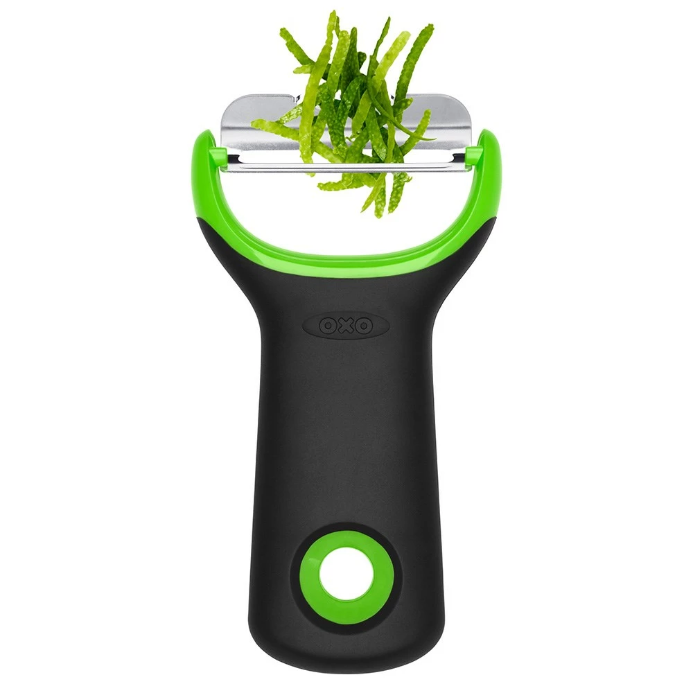 Create bright and attractive garnishes for your desserts and cocktails with the OXO Good Grips Prep Citrus Peeler