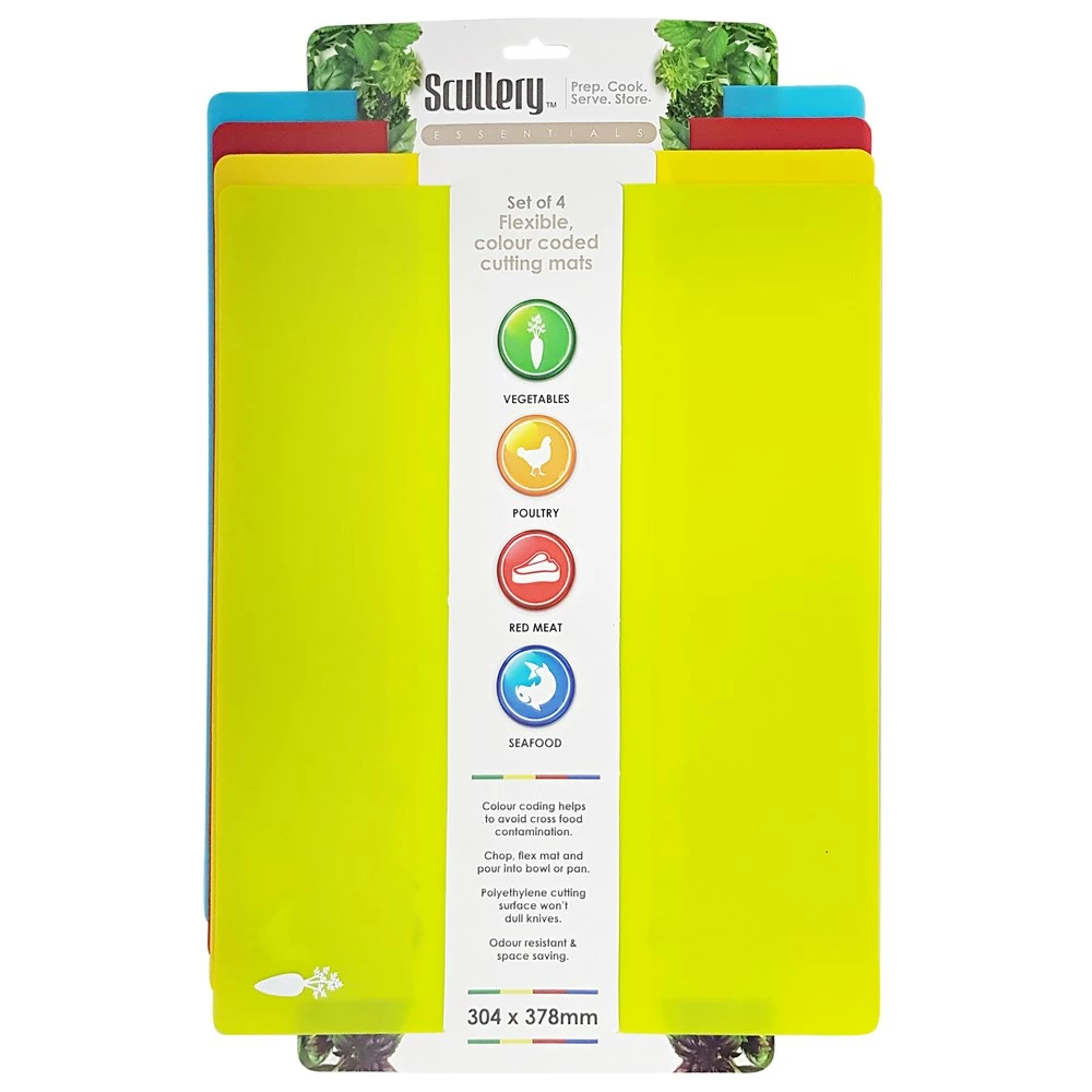 The Scullery Essentials Flexible Set of 4 Colour Coded Cutting Mat will help you avoid cross contamination