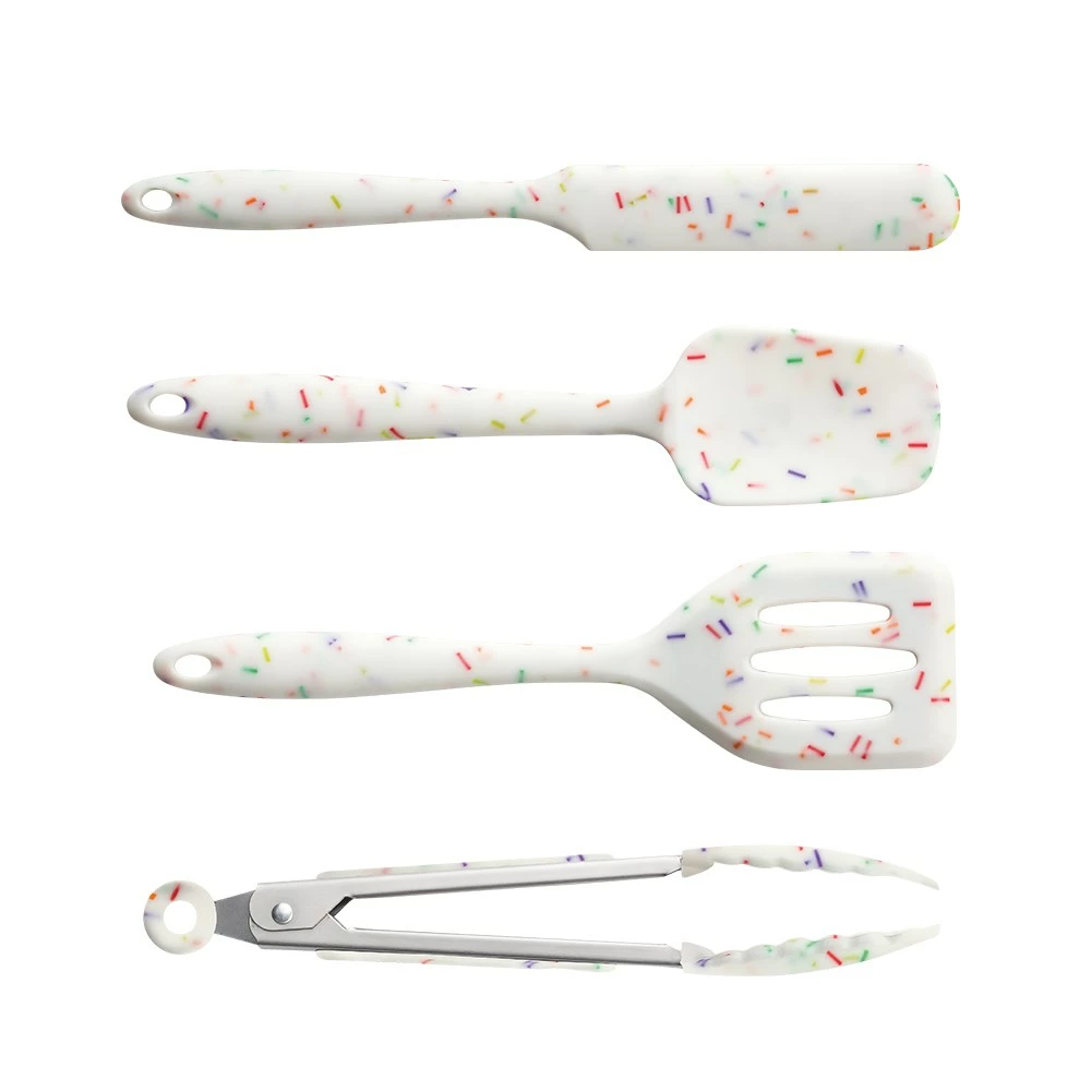 Upgrade your culinary skills and cook with the fun and functional Scullery Kolori Mini Silicone Utensil Set, decorated with a cute confetti design!
