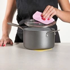 The 4-in-1 Scullery Kolori Pot Holder works as a potholder, trivet, board grip and jar opener