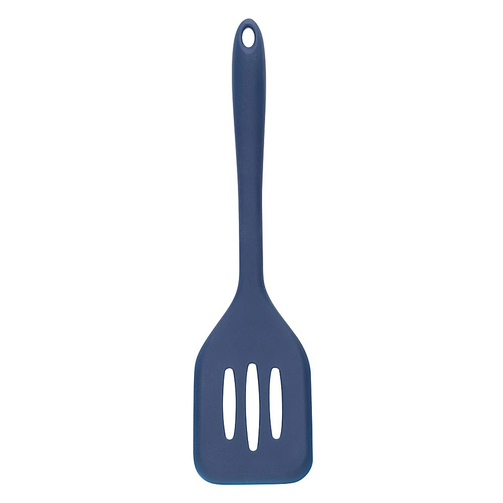Flip your fried eggs in the pan with ease using the high-quality Kolori Silicone Slotted Turner by Scullery! This staple kitchen tool comes in handy for turning meats on the barbeque, flipping pancakes and creating omelettes at home. Designed with air slots along the surface of the turner, this innovative utensil ensures that flat items such as eggs and burgers release easily from the cooking surface. Made from quality food-grade silicone, the Kolori Slotted Turner by Scullery is heat-safe to 240-degrees Celsius and is safe to use on non-stick cooking surfaces as it will not scratch. With a brilliant navy blue colour scheme, the Kolori Slotted Turner brings a burst of vibrance and contemporary style to your cooking space. Prepare delicious pancakes, eggs and more for breakfast with the Kolori Silicone Slotted Turner by Scullery!