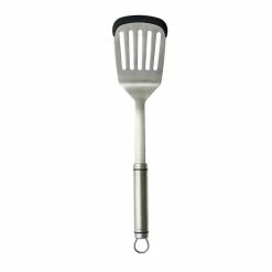 With all the power of a stainless-steel spatula, the Soffritto A Series Stainless Steel Spatula with Silicone Rim features a silicone edge that offers non-stick properties for easy food release and won’t scratch non-stick cookware. Crafted from professional grade 18/8 stainless steel, the Soffritto A Series Spatula with Silicone Rim has a perfectly weighted handle with an ergonomic grip that allows high levels of precision while in use. The heat-resistant, non-stick-safe silicone rim means the spatula can be used safely with all kinds of cookware. Dishwasher safe for fuss-free cleaning, the Soffritto A Series Stainless Steel Spatula with Silicone Rim is suitable for hanging storage due to its built-in handle loop, making it a valuable utensil to add to your kitchen collection.