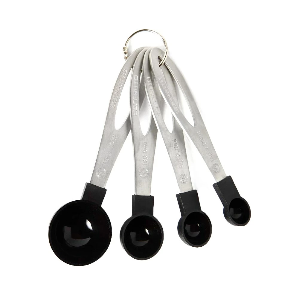 - Set includes 1 Tbsp, 1 Tsp, 1/2 tsp and 1/4 tsp